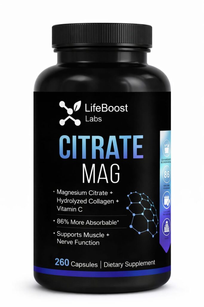 Citrate Mag is a dietary supplement formulated with magnesium citrate, hydrolyzed collagen, and vitamin C to support optimal mineral absorption and overall neuromuscular function. This advanced combination is designed to complement daily wellness routines focused on muscle performance, nervous system support, and physical recovery.